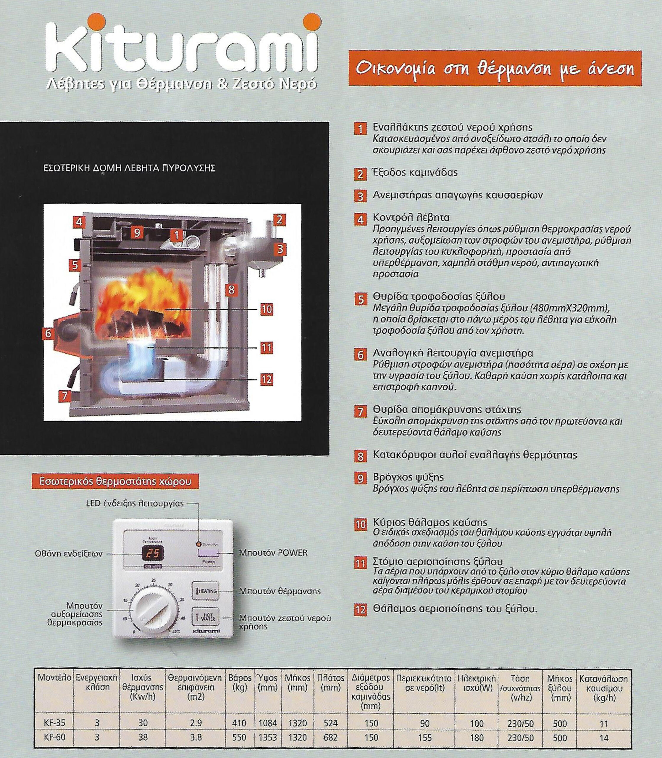 - Αυτόματη ρύθμιση καύσης με έλεγχο θερμοκρασίας καυσαερίων